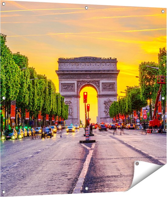 Affiche Jardin du Gards Arc de Triomphe à Paris depuis la Rue - 100x100 cm - Toile de jardin - Décoration de jardin - Décoration murale extérieur - Tableau jardin