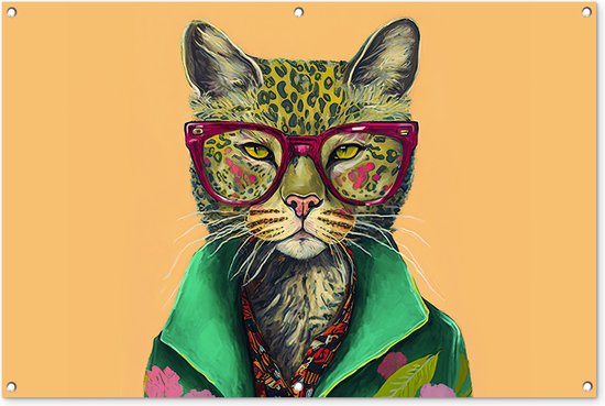 Affiche jardin - Toile jardin - Posters de jardin extérieur - Animaux - Chat - Lunettes - Fleurs - Hippie - 120x80 cm - Jardin