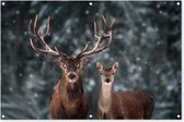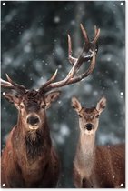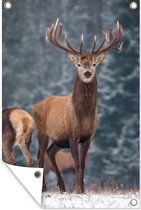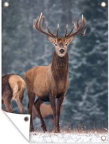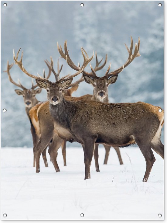 Affiche jardin - Toile jardin - Posters de jardin extérieur - Cerf - Animaux - Neige - Hiver - Paysage - Nature - 90x120 cm - Jardin