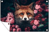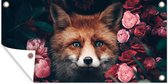 Affiche jardin - Toile jardin - Posters de jardin extérieur - Renard - Fleurs - Botanique - Animaux - 90x120 cm - Jardin
