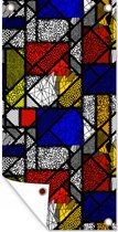Affiche jardin - Toile Posters de jardin extérieur - Mondrian - Glas - Oude Meesters - Oeuvre - Abstrait - Peinture - 120x90 cm - Jardin
