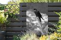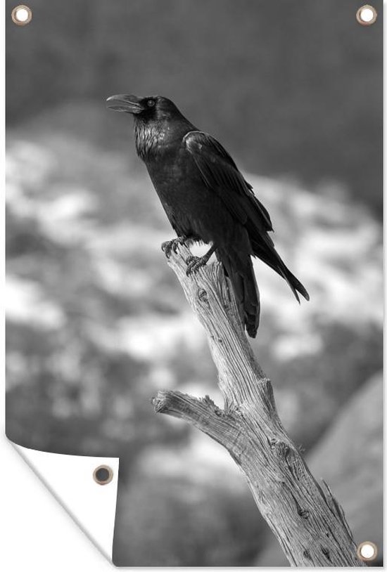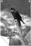 Affiche jardin - Toile Posters de jardin extérieur - Un corbeau noir sur une branche cassée - noir et blanc - 80x120 cm - Jardin