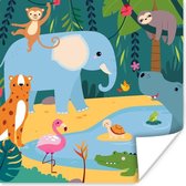 Affiche Jungle - Éléphant - Renard - Lion - 60x40 cm