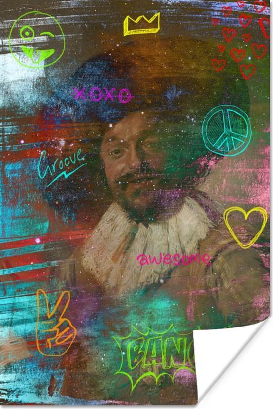 Affiche Le buveur joyeux - Frans Hals - Néon - 20x30 cm