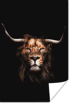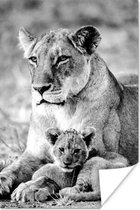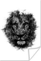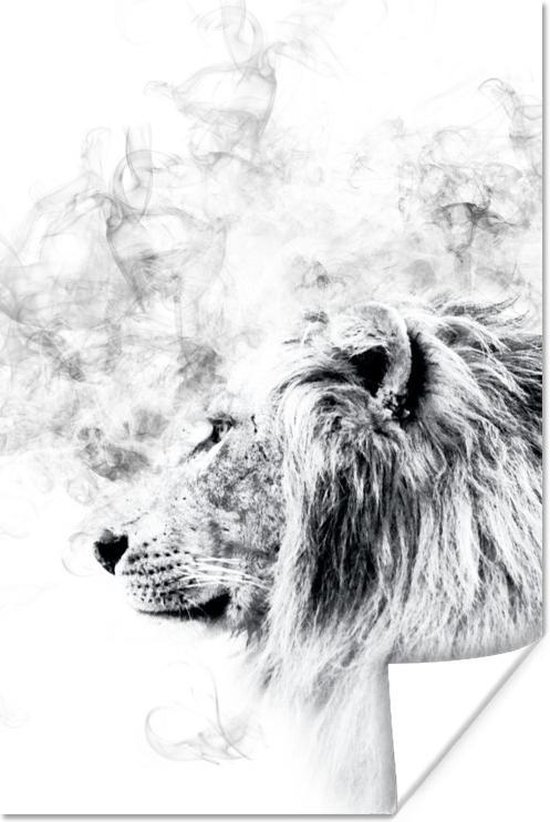 Affiche Lion - Fumée - Zwart - Wit - 60x90 cm
