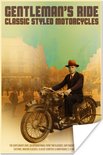 Illustration de mancave Vintage d'un homme sur une moto. Au-dessus de lui se trouve la citation ''les motos de style classique du gentleman's ride''.
