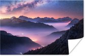 Affiche Montagnes - Ciel étoilé - Brouillard - 120x180 cm XXL