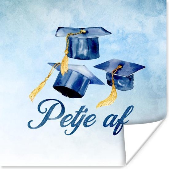 Affiche Passé - Chapeau de Diplôme - Blauw - 75x75 cm