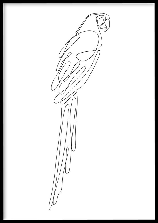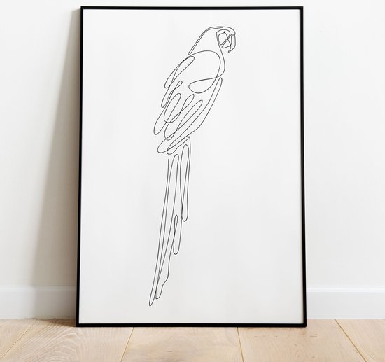 Affiche Perroquet - 30x40 cm avec Cadre Photo - Affiche au Line - Affiche abstraite - Encadrée - WALLLL