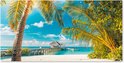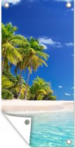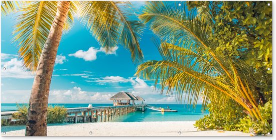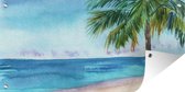 Affiche pour clôture Plage - Palmier - Mer - 200x100 cm - Toile de jardin
