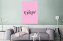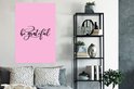 La citation Soyez reconnaissant est écrite en lettres noires sur fond rose.