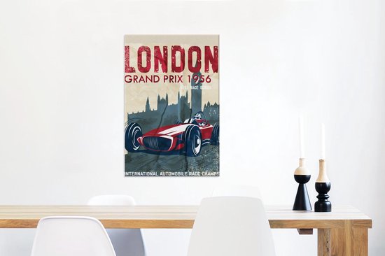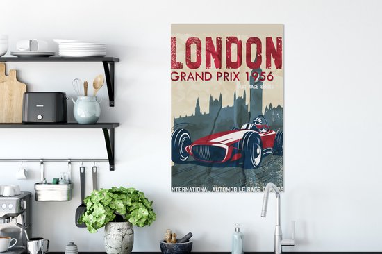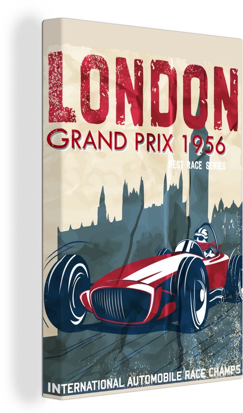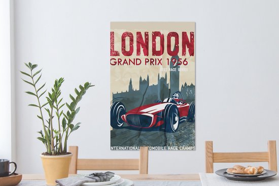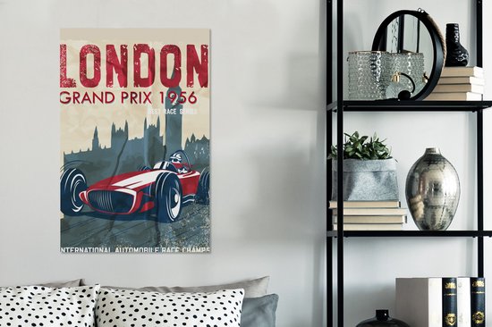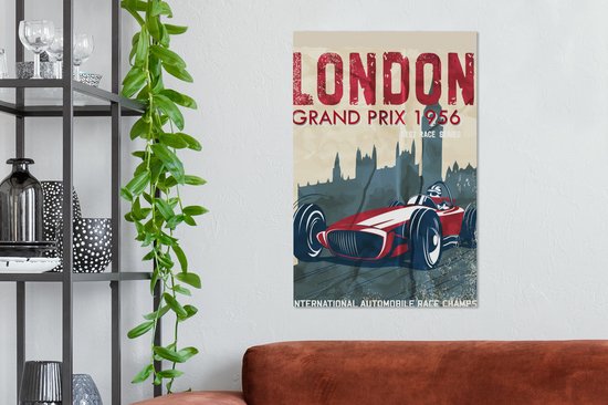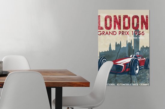 Affiche rétro avec voiture de course rouge 60x90 cm - Tirage photo sur toile (Décoration murale salon / chambre) - Tirage photo sur affiche (décoration murale salon / chambre)