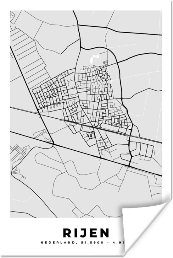 Affiche Rijen - Carte - Zwart Wit - Nederland - Carte - Plan de la ville - 80x120 cm