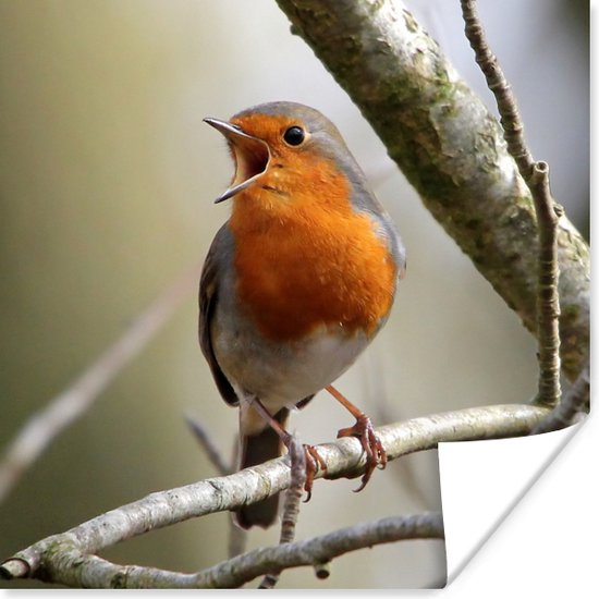 Affiche Robin sur une branche d'arbre 50x50 cm - Tirage photo sur Poster (décoration murale salon / chambre)