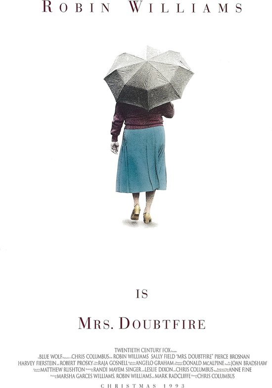 Affiche - Robin Williams dans Mme Doubtfire, affiche de film originale, emballée dans un tube de rouleau en carton solide