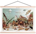 Affiche scolaire - Animaux aquatiques marins - Pierres - Vintage - Dessin - 60x45 cm - Lattes vierges