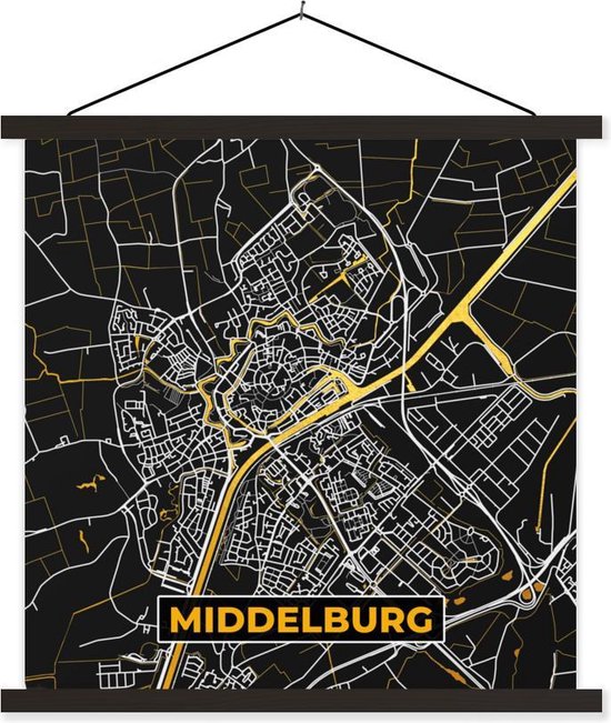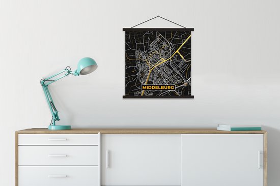 Affiche scolaire - Carte - Middelburg - Or - Zwart - 60x60 cm - Lattes noires