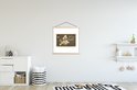 L'affiche textile est imprimée sur une toile solide avec deux lattes de bois vierges en haut et en bas. Une ficelle est attachée aux lattes, de sorte que la commission scolaire puisse être facilement suspendue. Les affiches textiles MuchoWow sont disponibles dans plus de 25 tailles différentes. En plus des lattes en bois vierges, les affiches textiles sont également disponibles avec des lattes noires ou blanches.