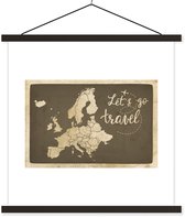 Affiche scolaire - Carte Vintage de l'Europe avec la citation Let's en travel - 90x90 cm - Lattes vierges