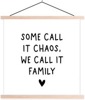 Affiche scolaire - Citation en anglais Certains l'appellent chaos, nous l'appelons famille avec un cœur sur fond blanc - 60x60 cm - Lattes transparentes