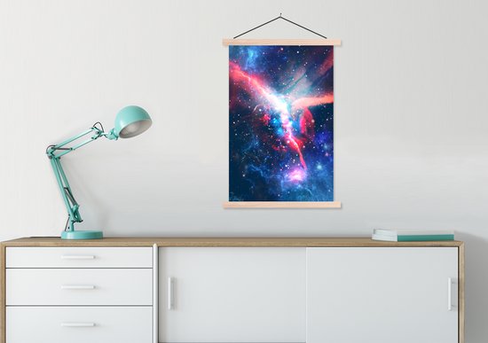 L'affiche textile est imprimée sur une toile solide avec deux lattes de bois vierges en haut et en bas. Une ficelle est attachée aux lattes, de sorte que la commission scolaire puisse être facilement suspendue. Les affiches textiles MuchoWow sont disponibles dans plus de 25 tailles différentes. En plus des lattes en bois vierges, les affiches textiles sont également disponibles avec des lattes noires ou blanches.