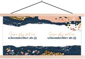L'affiche textile est imprimée sur une toile solide avec deux lattes de bois vierges en haut et en bas. Une ficelle est attachée aux lattes, de sorte que la commission scolaire puisse être facilement suspendue. Les affiches textiles MuchoWow sont disponibles dans plus de 25 tailles différentes. En plus des lattes en bois vierges, les affiches textiles sont également disponibles avec des lattes noires ou blanches.