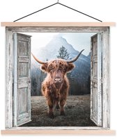 Affiche scolaire - Highlander écossais - Ferme - Paille - 60x60 cm - Lattes vierges