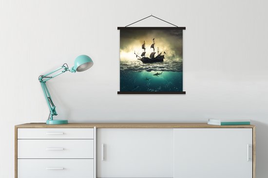 Affiche scolaire - Mer - Bateau - Requin - 60x60 cm - Lattes noires