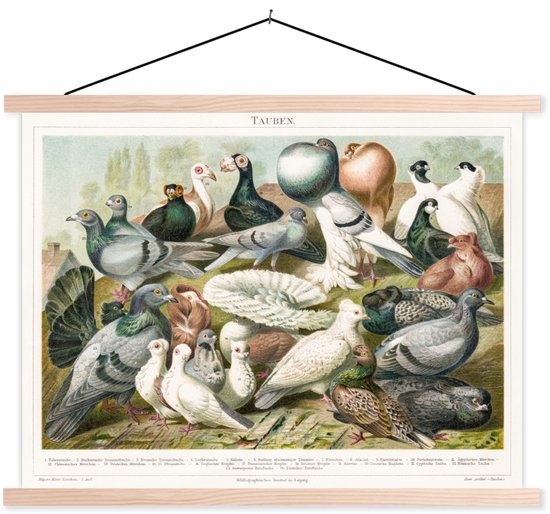 Affiche scolaire - Pigeons - Vintage - Dessin - 120x90 cm - Lattes vierges