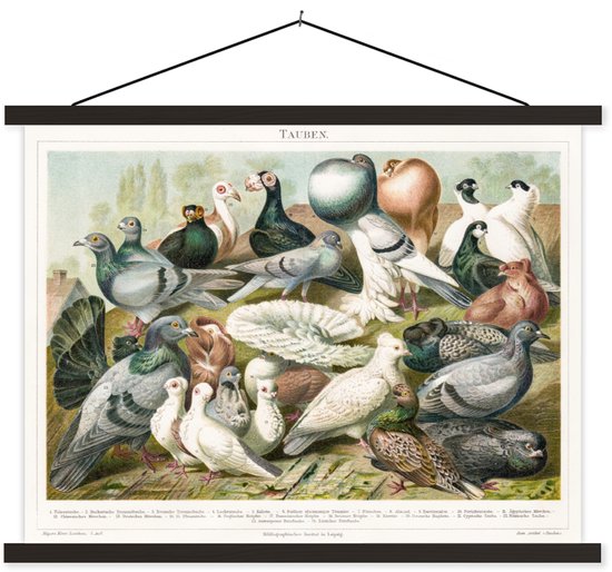 Affiche scolaire - Pigeons - Vintage - Dessin - 60x45 cm - Lattes noires