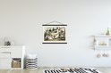 L'affiche textile est imprimée sur une toile robuste avec deux lattes noires en haut et en bas. Une ficelle est attachée aux lattes, de sorte que la commission scolaire puisse être facilement suspendue. Les affiches textiles MuchoWow sont disponibles dans plus de 25 tailles différentes. En plus des lattes noires, les affiches textiles sont également disponibles avec des lattes en bois blanches ou claires.