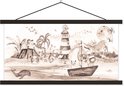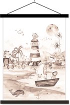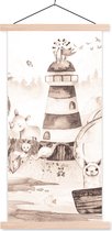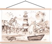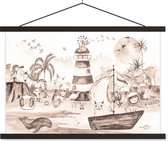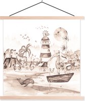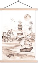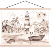 Affiche scolaire safari - Affiche scolaire enfants - Plage - Enfants - Phare - Alpaga - Mer - Animaux - Décoration chambre enfant - Décoration murale - 90x45 cm
