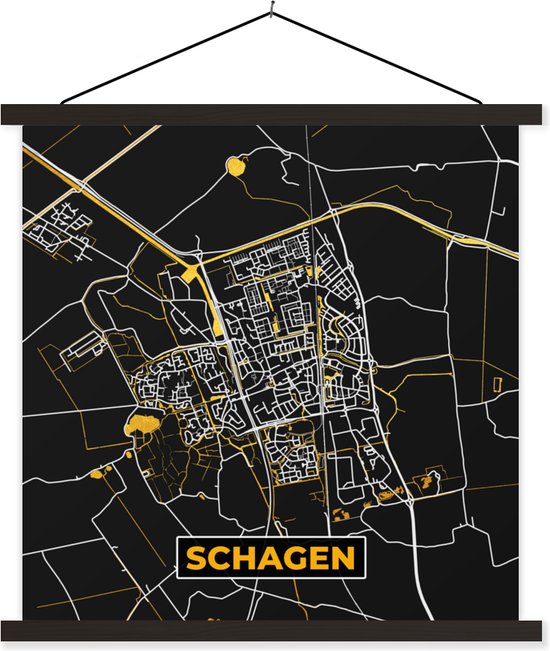 Affiche scolaire - Schagen - Carte - Carte - Or - Plan de la ville - 40x40 cm - Lattes noires