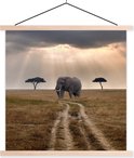 Affiche scolaire - Soleil sur un éléphant dans une réserve naturelle - 40x40 cm - Lattes vierges