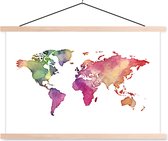 Affiche scolaire - Wereldkaart - Aquarelle - Arc-en-ciel - 120x80 cm - Lattes vierges