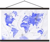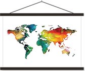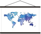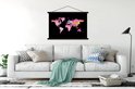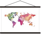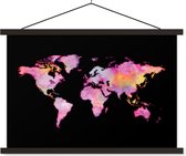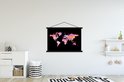 Affiche scolaire - Wereldkaart - Aquarelle - Rose - 150x100 cm - Lattes noires