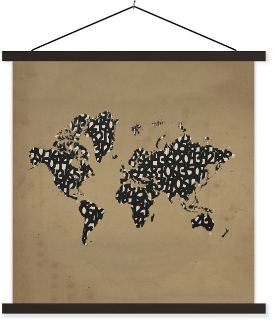 Affiche scolaire - Wereldkaart - Chiffres - Zwart - 40x40 cm - Lattes noires