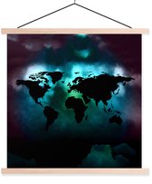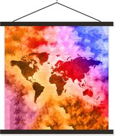 Affiche scolaire - Wereldkaart - Couleurs - Fumée - 40x40 cm - Lattes noires