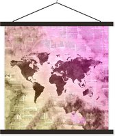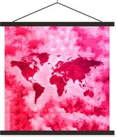 Affiche scolaire - Wereldkaart - Couleurs - Rose - 40x40 cm - Lattes noires