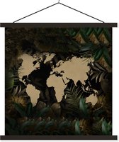 Affiche scolaire - Wereldkaart - Feuilles - Beige - 40x40 cm - Lattes noires