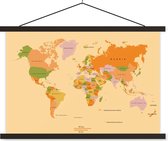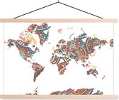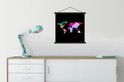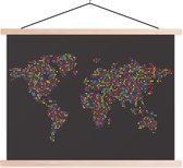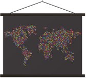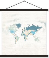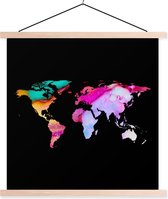 Affiche scolaire - Wereldkaart - Couleurs - Peinture - 60x60 cm - Lattes noires