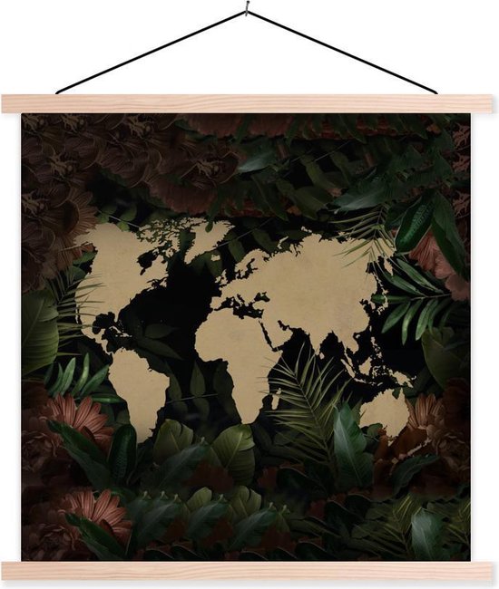Affiche scolaire - Wereldkaart - Fleurs - Plantes - 60x60 cm - Lattes vierges