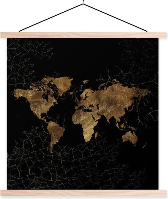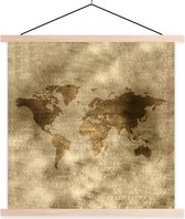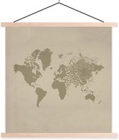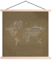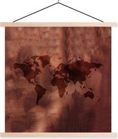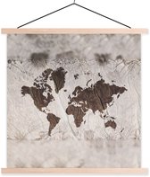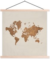 Affiche scolaire - Wereldkaart - Ligne - Marron - 90x90 cm - Lattes vierges