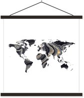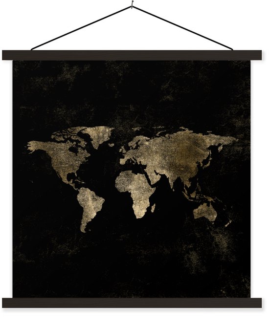 Affiche scolaire - Wereldkaart - Zwart - Or - 40x40 cm - Lattes noires