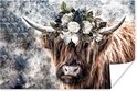 Affiche Scottish Highlander - Fleurs - Brouillard - 30x20 cm