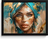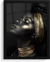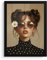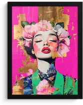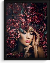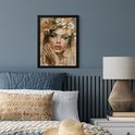 Affiche sous cadre - Cadre photo 30x40 cm - Posters - Femme - Fleurs - Or - Portrait - Cadre affiche noir - Décoration - Décoration Décoration murale salon - Décoration murale chambre