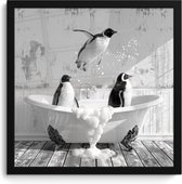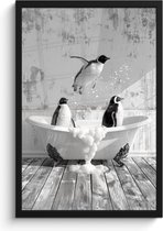 Affiche sous cadre - Cadre photo 60x40 cm - Posters - Pingouins - Vintage - Animaux - Zwart - Wit - Cadre affiche noir - Décoration Décoration murale salle de bain - Décoration murale toilette - Accessoires décoratifs - Décoration murale Toilettes