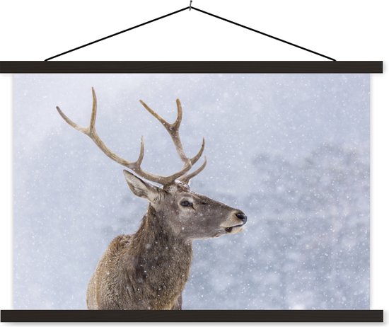 Affiche textielposter cerf en hiver lattes noir 150x100 cm