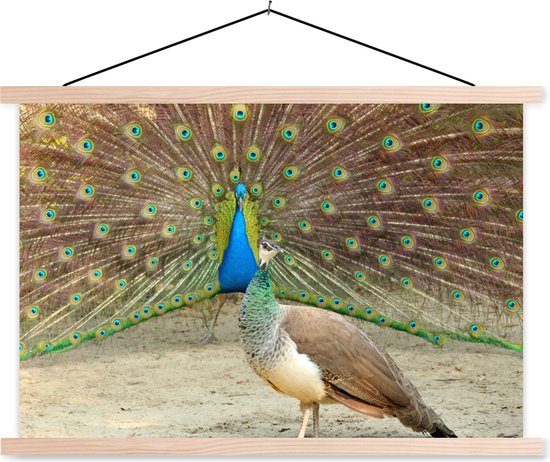 Affiche textielposter paon vert mâle montre des plumes à paon femelle 120x80 cm