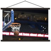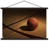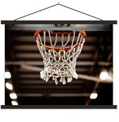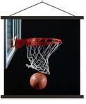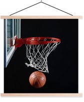 Affiche textielposter Un Basketbal à travers le panier sur fond noir 60x60 cm